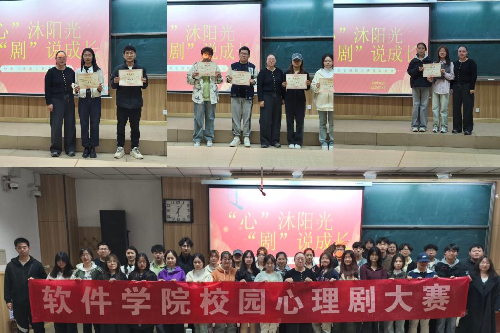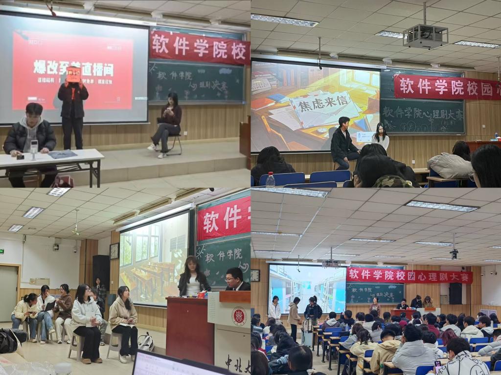 于2025 年 3 月 18 日下午 4 点 30 分,在 09102 教室成功举办了以 “‘心’沐阳光,‘剧’说成长” 为主题的心理剧大赛。学院负责心理健康教育工作的王婷婷老师、赵艳芳老师,以及多名学生会学生代表担任此次活动评委。来自学院参加决赛的七支队伍,与150 余名亲友团同学齐聚一堂,共同开启了一场触动心灵的艺术疗愈之旅。