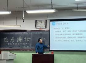 活动中,洪军老师结合自身求学经历,从研究生现状、研究方向、研究方法以及个人身心调节四个方面为同学们进行了详细的讲解。洪老师不断用自己身边的事例来激励和敦促同学们,让同学们明白了在研究生三年的学业中充实、高效学习的重要性。他还强调:在注重学习规划的同时也要注意身心调节,这样才能快乐学习,健康生活。
