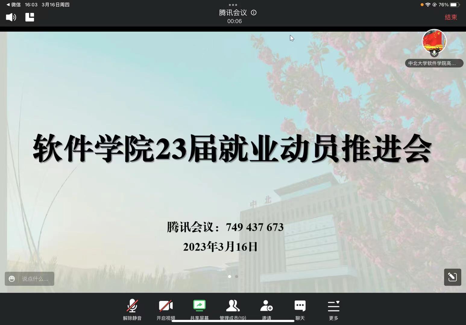 为切实推进2023届毕业生就业工作,全力促进毕业生顺利就业,3月16日下午,我院在腾讯会议召开了2023届毕业生线上春季就业工作推进会,学院党委副书记兼副院长高宏图、9家实训企业就业负责人、就业辅导员乞国钰参加了会议。
