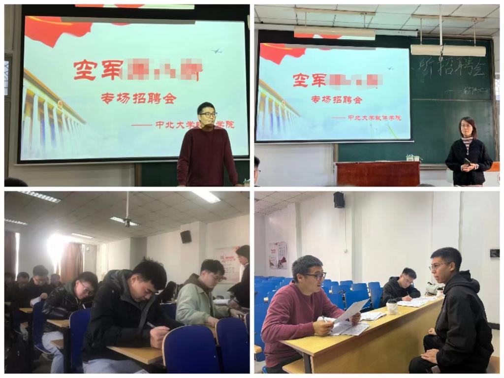 积极联系北京空军某研究所负责人进驻校园开展专场招聘活动。学院党委副书记高宏图、研究生辅导员魏跃亲参加了活动。