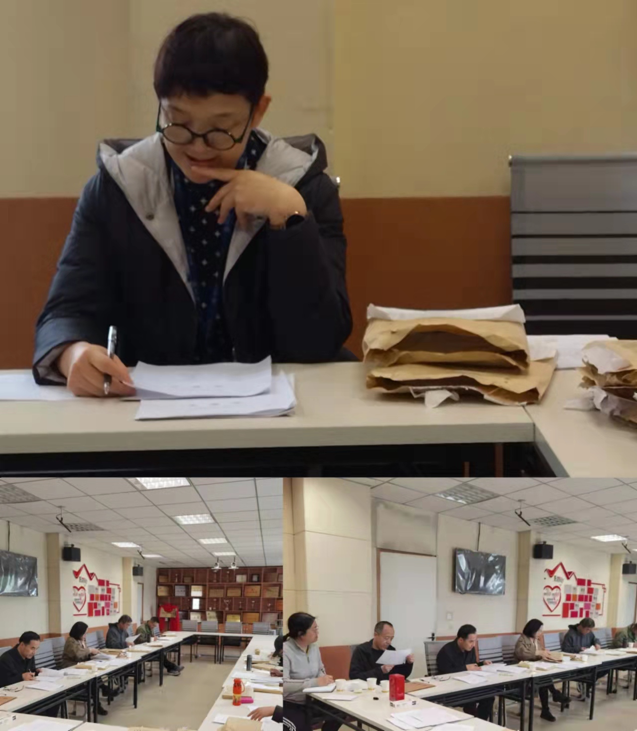 122会议室开展教改项目的初步评审工作,参会人员有院长宋文爱,教学副院长李众,研究生院副院长杨秋翔以及各基层负责人,各参会人员按照学校对教改项目的申报条件与要求,对各项目负责人申报的材料进行打分,初审结束后教学科将同意立项的申报项目材料进行排序汇总。